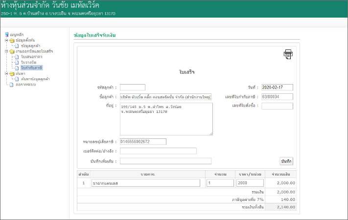 ออกแบบ พัฒนาระบบฐานข้อมูลสินค้า ข้อมูลลูกค้า และพนักงาน